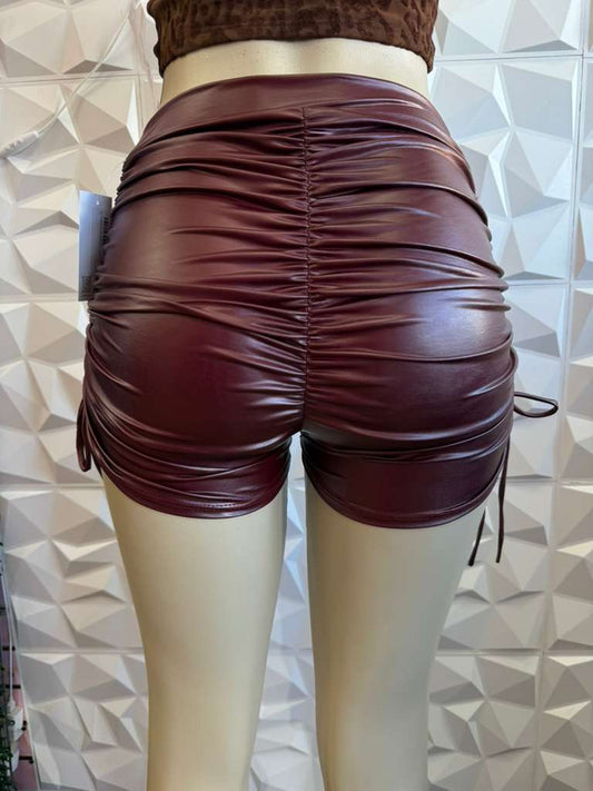Leather Ruched Shorts
