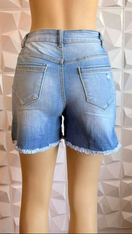 High-Rise Distressed Denim Bermuda Shorts