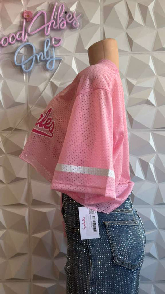Los Angeles Pink Lace Crop Jersey
