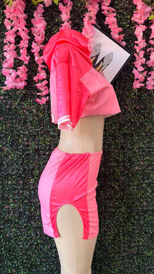 Pink Jersey-Style Mini Skirt Set