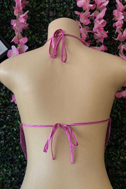RHINESTONE HALTER HANDKERCHIEF TOP