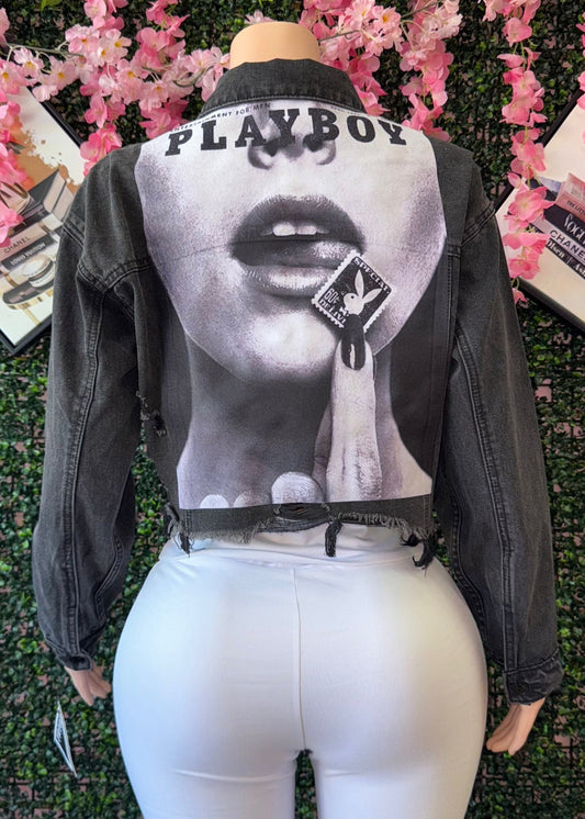 SEXY PLAY BOY CROP DENIM JACKET