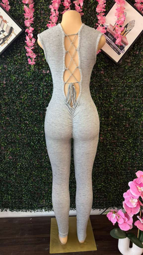 The back is the focal point, featuring a striking lace-up closure that runs vertically down the center of the back. Below the lacing and at the top of the buttocks, there is a scrunch gathering detail, which is designed to enhance the figure.